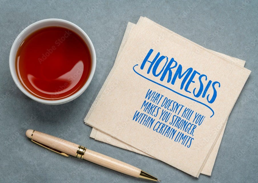 It’s a simple concept rooted in toxicology, dating back 500 years to Paracelsus, who said, “Everything is a poison, nothing is a poison, it all depends on the dosage.” Two hundred years later, Hugo Schulz refined this into what we now call hormesis, the principle that small doses of a stressor stimulate positive adaptation, moderate doses maintain homeostasis, and large doses cause harm.